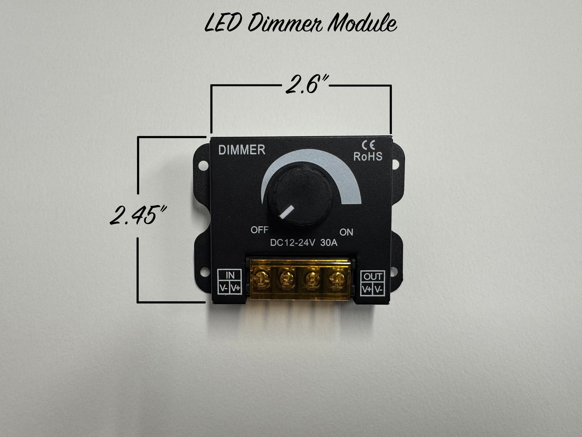These small LED Dimmer Modules can be used to dim the LED strip lights that come with our LED Aluminum Trim and the LED strips we sell separately. They are easy to wire, and easy to use. Simply turn the knob to dim the LEDs. The module has 4 terminal block screws, allowing you to securely make your electrical connections. It has connections for 1 (+) and 1 (-) coming in from the 12v source, and 1 (+) and 1 (-) going out to the LED lights.